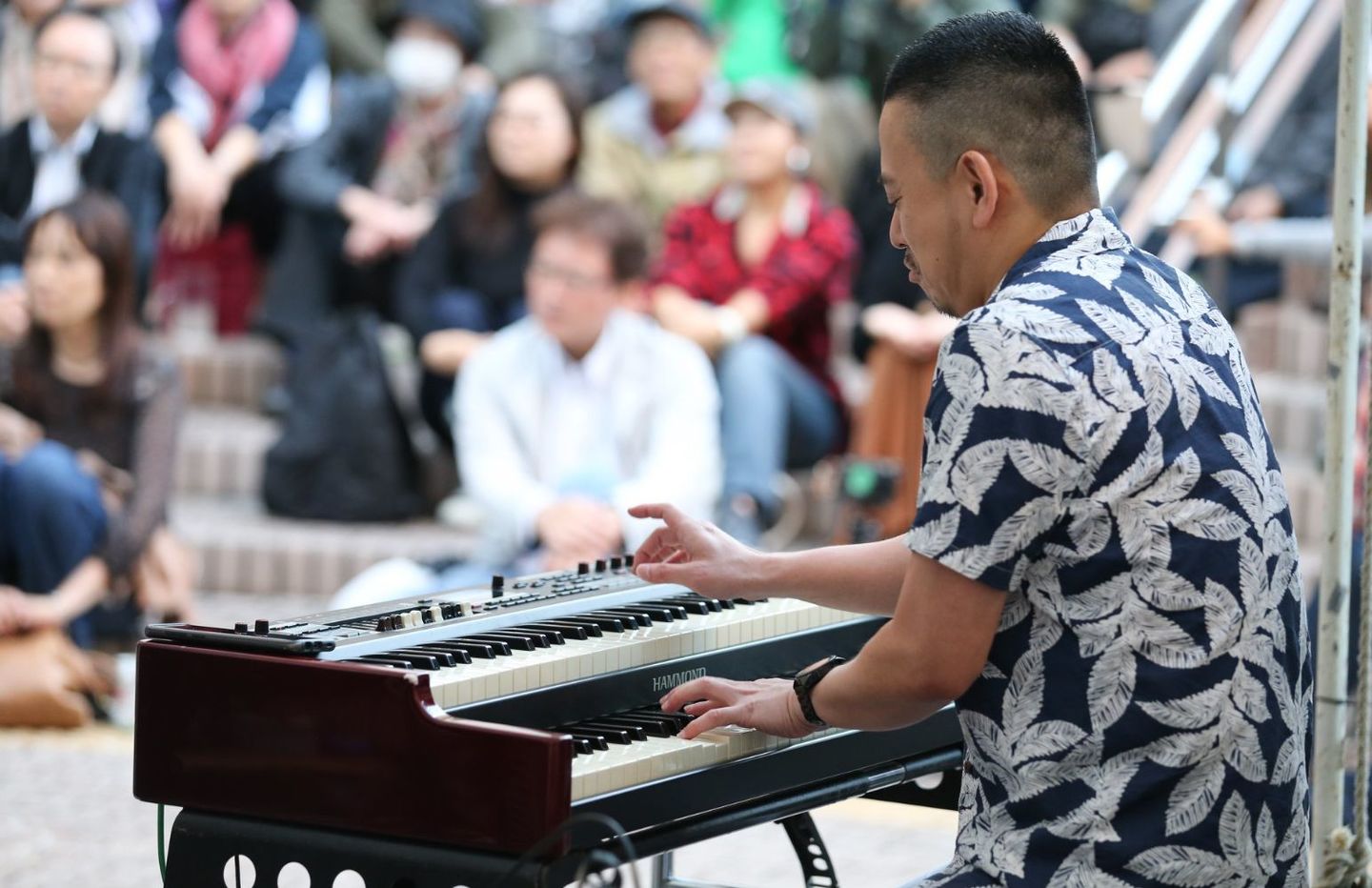 出身地: 大阪府/ 影響を受けたミュージシャン: カシオペア、チック・コリア、ハービー・ハンコック、キダタロー/ 代表的な共演者: 東原力哉(Dr)、五味孝氏(Gt)、押尾コータロー(Gt)、ichiro(Gt)、日野ジノ賢二(Ba)、鈴木聖美(Vo)、たなかりか(Vo)、bird(Vo)、妹尾隆一郎(Harp)、宮崎 隆睦(Sax)、TAMTAM (Gt, Vo)など/ 主な活動バンド: The Moody (K)nights(浜松)、漂流ワゴン(東京)、味園ゆにば~す(東京)、BBBCB(東京)、新井深絵(大阪)/ 一言: 鬼祭(ヴォイトレ祭通称)には、第1回目からすべて出演させて頂いています。いつぞやからか衣装替えを勝手にやってますが、そろそろネタ切れです。いいアイデアあったら教えてください! ※この鬼祭では、シンセサイザーで多くの音色を仕込まなければなりません。その模様を軽やかなトークで紹介していますw (YouTube)。Check it!